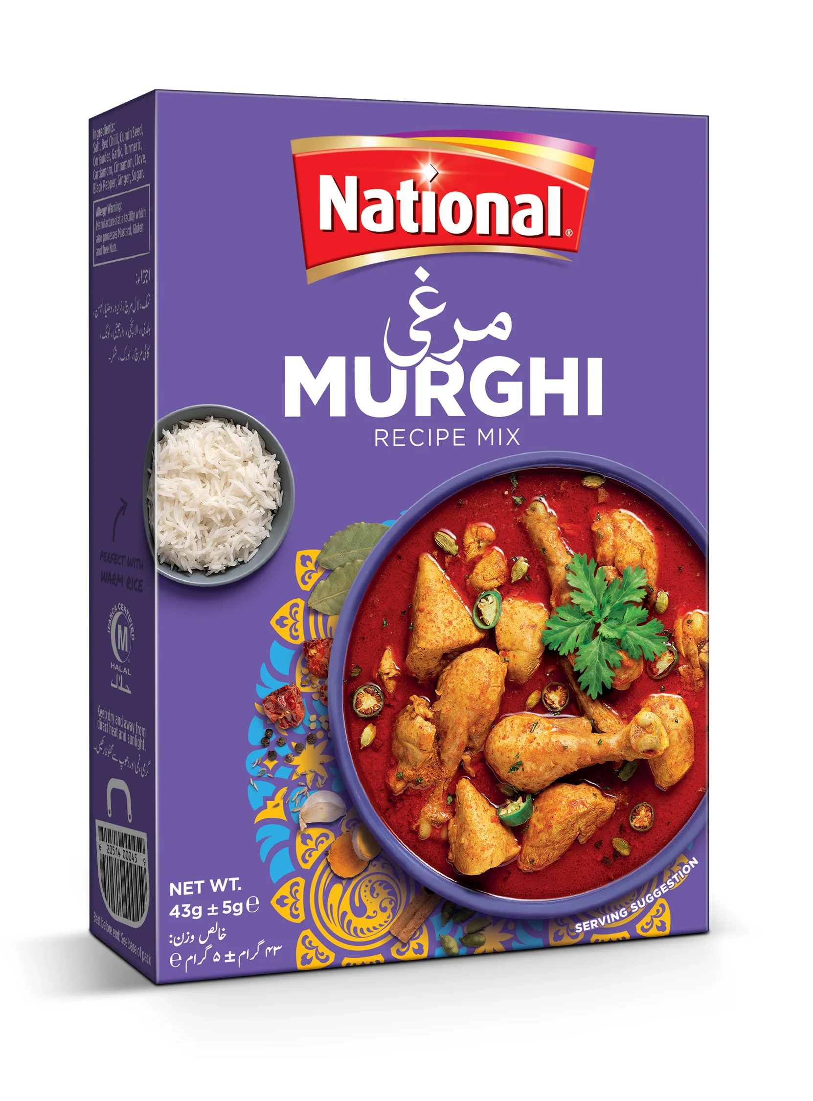 National Murghi Masala provides the ultimate blend of spices and herbs to give your Chicken Gravy a distinctive flavor and aroma. Conveniently prepare dishes without compromising on taste with help of our recipe mix.